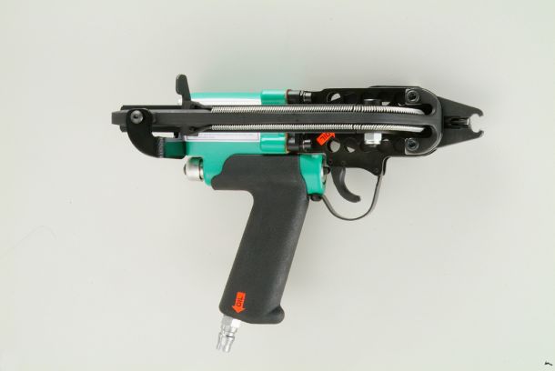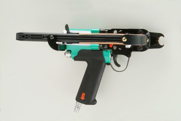 Le anellatrici pneumatiche funzionano grazie all’aria erogata da un apposito compressore. Questo sistema ad alta potenza garantisce una velocità operativa che può arrivare ai 200 cicli al minuto, garantendo allo stesso tempo un elevato livello di precisione e un’accurata regolazione della profondità e della chiusura dei gancetti. Queste prestazioni le rendono ideali per gli impieghi continui e intensivi.